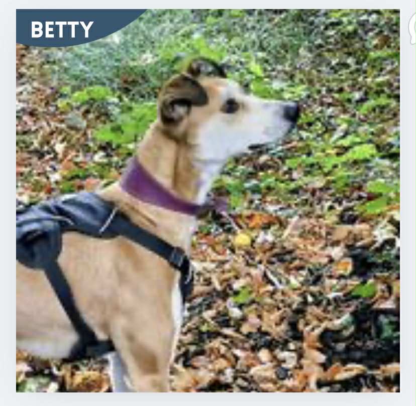 Betty arrived back in May and is now with us for 10 long months. She is a lurcher. Betty is 1 year old and she is chipped, spayed & vaccinated.