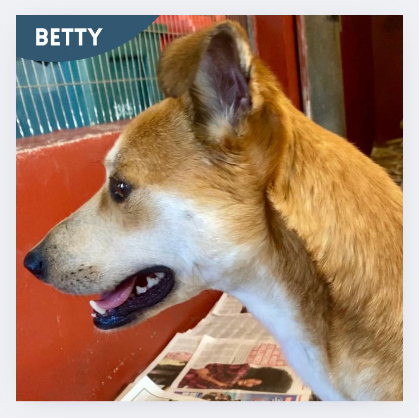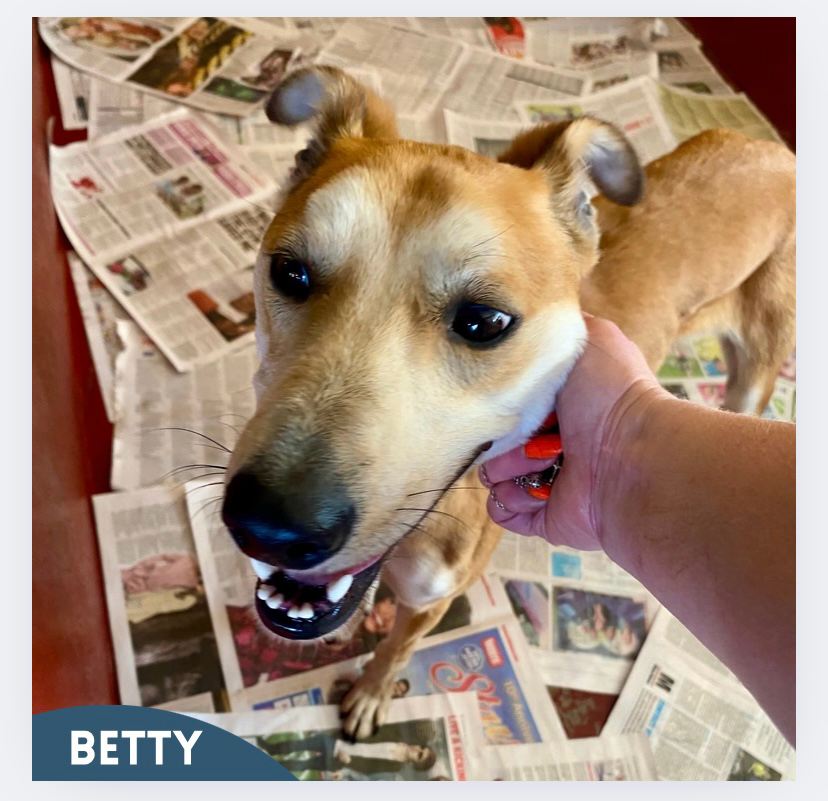 Betty is looking for an indoor home with a very secure garden. High boundaries will be needed as she does have a high prey drive. She needs someone willing to set healthy boundaries and to give her time to adjust to a new environment. A home with younger children would not work as she is a large dog and would knock them over or nip them. She will need someone home most of the day to help her with all aspects of being a healthy & happy dog.