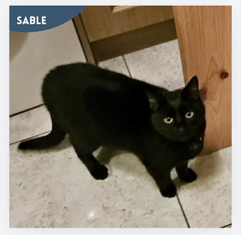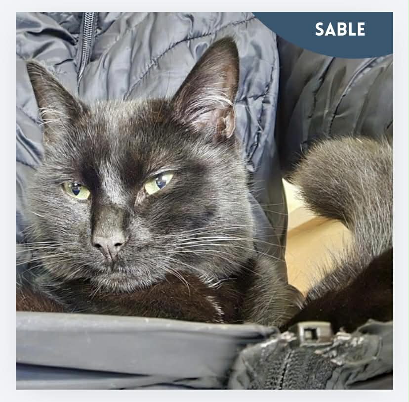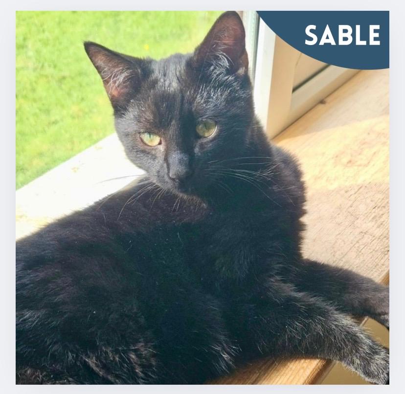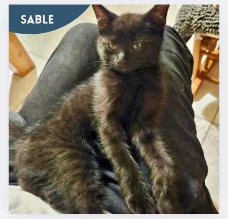 Sable is 9 months old, neutered and vaccinated and is looking for a lap to snooze on.